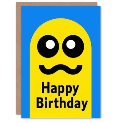 Artery8 Birthday Card Yellow Ghost Retro Video Game Style For Child Kids Son Daughter Greeting