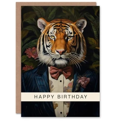 Artery8 Birthday Greeting Card Classy Tiger Floral Portrait For Him