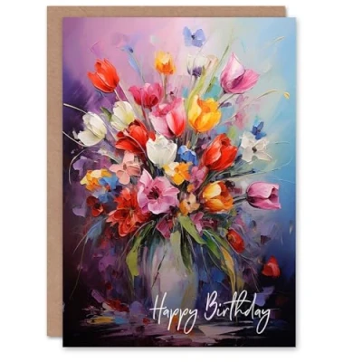 Artery8 Birthday Greeting Card Colourful Flower Bouquet Vase For Her