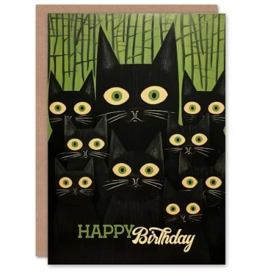 Artery8 Birthday Greeting Card Creepy Fun Black Cats For Him Her