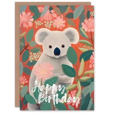 Artery8 Birthday Greeting Card Floral Koala Tree Flowers For Her