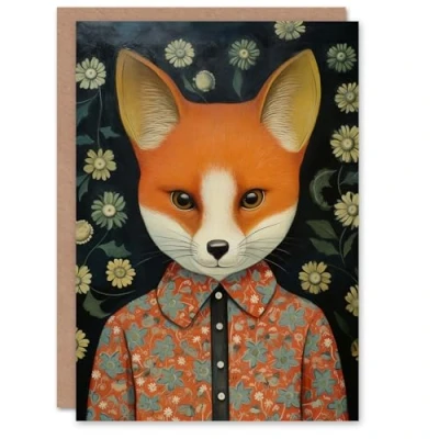 Artery8 Birthday Greeting Card Floral Shirt Cute Fox For Him Her