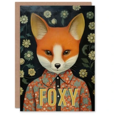 Artery8 Birthday Greeting Card Fox in Floral Shirt Cute Foxy For Her