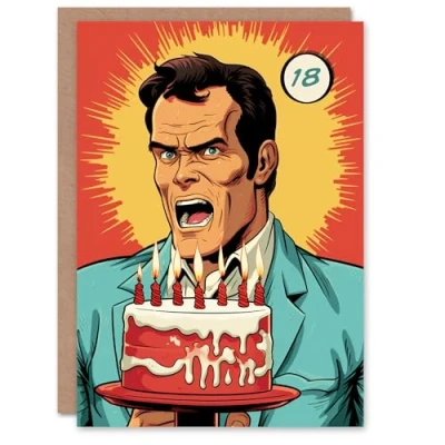 Artery8 Birthday Greeting Card Funny Angry Comic Man Cake Age 18 Year Old For Him Her