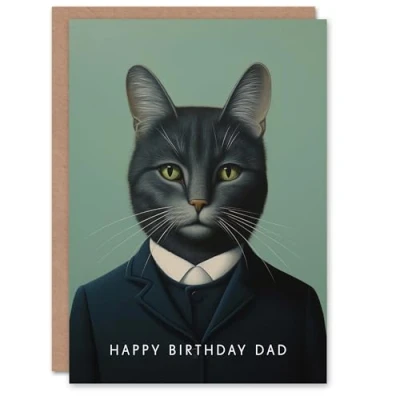 Artery8 Birthday Greeting Card Green Suit Serious Cat Lover For Dad Father