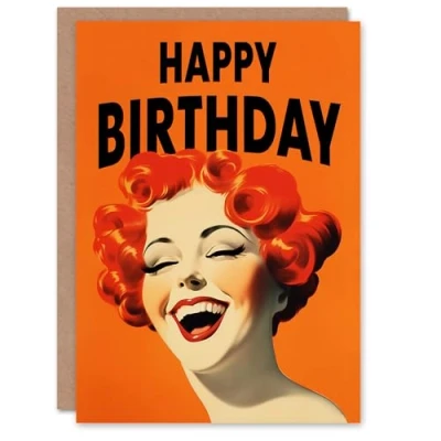 Artery8 Birthday Greeting Card Happy Laughing Ginger Lady For Her
