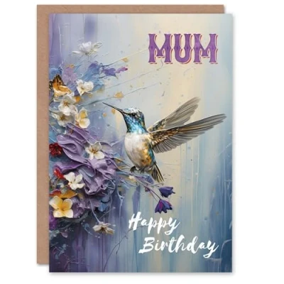 Artery8 Birthday Greeting Card Hummingbird Flowers Painting For Mum