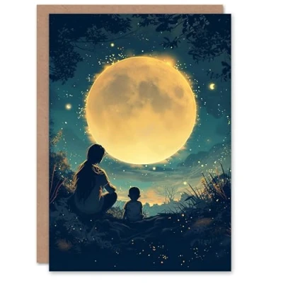 Artery8 Birthday Greeting Card Mother and Child Full Moon From Son For Mum