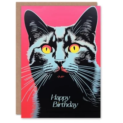 Artery8 Birthday Greeting Card Neon Sunset Cat Lover Design For Her