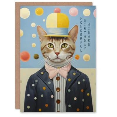 Artery8 Birthday Greeting Card Polka Dot Cat Lover Wonderful Wishes For Him Her