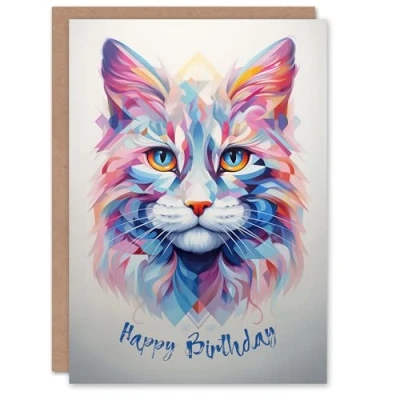 Artery8 Birthday Greeting Card Polygonal Cat Lover Design For Her