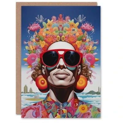 Artery8 Birthday Greeting Card Psychedelic Trippy Sunglasses Guy For Him Her