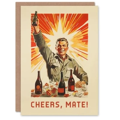 Artery8 Birthday Greeting Card Raise Glass Vintage Cheers Mate For Him Her