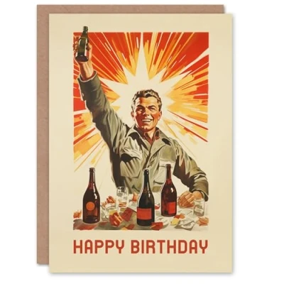 Artery8 Birthday Greeting Card Raise Glass Vintage Illustration For Him Her