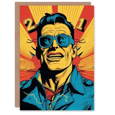 Artery8 Birthday Greeting Card Retro Comic Super Hero Age 21 Year Old 21st For Him