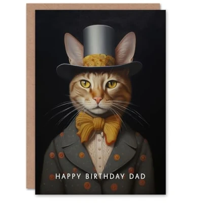 Artery8 Birthday Greeting Card Top Hat Cat Lover Suit Dad