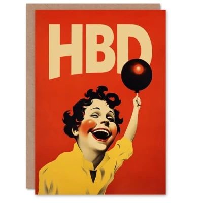 Artery8 Birthday Greeting Card Vintage Advert HBD Kid Balloon Smile For Him Her
