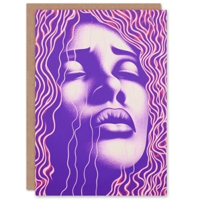 Artery8 Birthday Greeting Card Woman Face Trippy Purple Soulful For Her