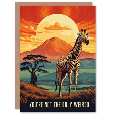 Artery8 Birthday Greeting Card Zebra Giraffe Not The Only Weirdo Savanna Sunset For Him Her