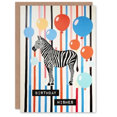 Artery8 Birthday Greeting Card Zebra Stripes Balloons Wishes For Her