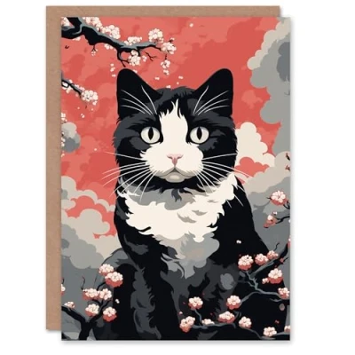 Artery8 Birthday Personalised Greeting Card Tuxedo Cat Lover Cherry Blossom For Her Custom