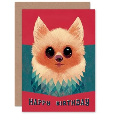 Artery8 Birthday Pomeranian Japanese Kitsune For Him Her Blank Inside Greeting Card