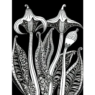 Artery8 Black and White Contour Folk Art Arisaema Flowers Extra Large XL Wall Poster Print