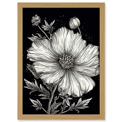 Artery8 Black and White Cosmos Flower Starry Night Sky Artwork Framed Wall Art Print A4