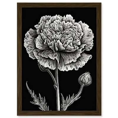 Artery8 Black and White Linocut Carnation Flower Print Artwork Framed A3 Wall Art