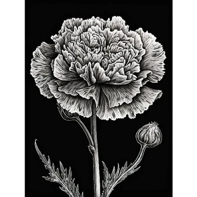 Artery8 Black and White Linocut Carnation Flower Print Extra Large XL Wall Art Poster