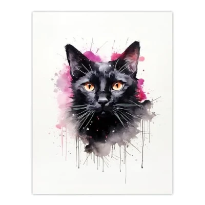 Artery8 Black Cat Lovers Gift Watercolour Pet Portrait Painting Artwork Extra Large XL Wall Art Poster Print