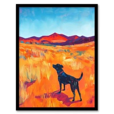 Artery8 Black Labrador in Countryside Landscape Dog Lover Living Room Artwork Framed Wall Art Print A4