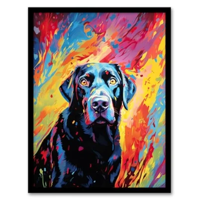 Artery8 Black Labrador Retriever Dog Lover Gift Pet Portrait Vibrant Colourful Artwork Painting Framed Wall Art Print 18X24 Inch