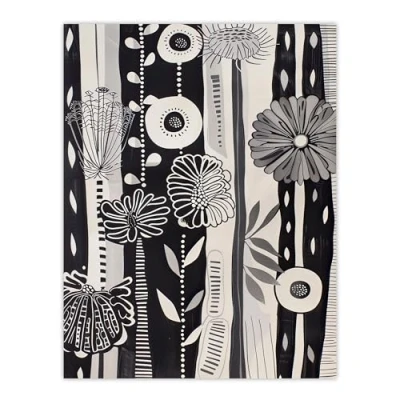 Artery8 Black White Striped Wildflowers Artwork Floral Living Room Large Wall Art Poster Print Thick Paper 18X24 Inch