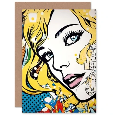 Artery8 Blonde Woman Face Comic Style Portrait for Wife Her Mum Sister Daughter Mom Gran Nan Birthday Thank You Congratulations Blank Art Greeting Card