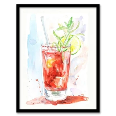 Artery8 Bloody Mary Cocktail Drink Watercolour Simple Kitchen Artwork Framed Wall Art Print A4
