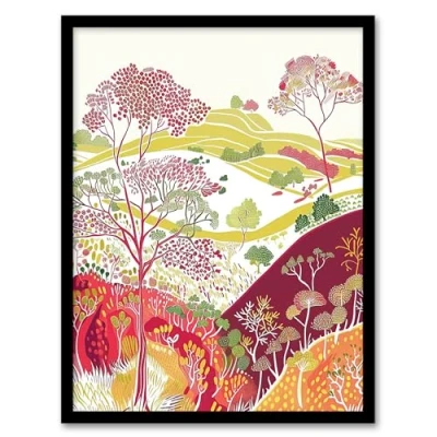 Artery8 Blooming Trees Yorkshire Countryside Landscape Living Room Artwork Framed Wall Art Print A4