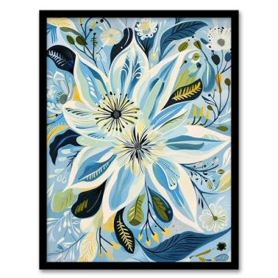 Artery8 Blue Abstract Wildflowers Painting Floral Living Room Artwork Framed Wall Art Print A4