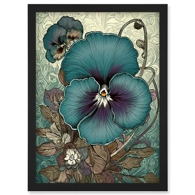 Artery8 Blue and Purple Pansy Flower Floral Patterns Artwork Framed Wall Art Print A4