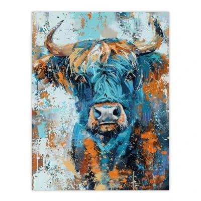 Artery8 Blue Highland Cow Oil Painting Scottish Animal Living Room Large Wall Art Poster Print Thick Paper 18X24 Inch
