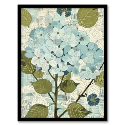 Artery8 Blue Hydrangea Flowers Artwork Bouquet Floral Living Room Framed Wall Art Print A4