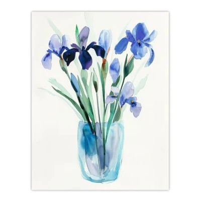 Artery8 Blue Iris Flower Bouquet Vase Floral Watercolour Living Room Large Wall Art Poster Print Thick Paper 18X24 Inch