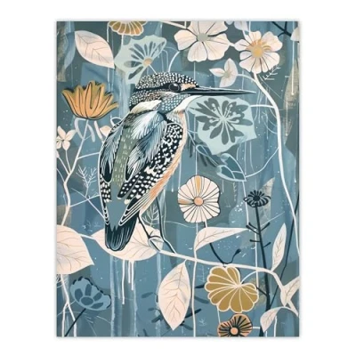 Artery8 Blue Kingfisher Bird Floral Branch Flower Pattern Living Room Extra Large XL Wall Art Poster Print