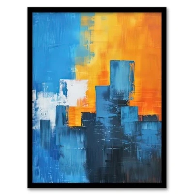 Artery8 Blue Orange Squares Abstract Cityscape Sunrise Living Room Artwork Framed Wall Art Print A4