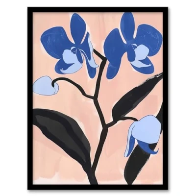 Artery8 Blue Orchid Flower Bloom Abstract Floral Painting Living Room Artwork Framed Wall Art Print A4