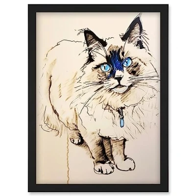 Artery8 Blue Point Ragdoll Cat Sketch Drawing Portrait Artwork Framed Wall Art Print A4