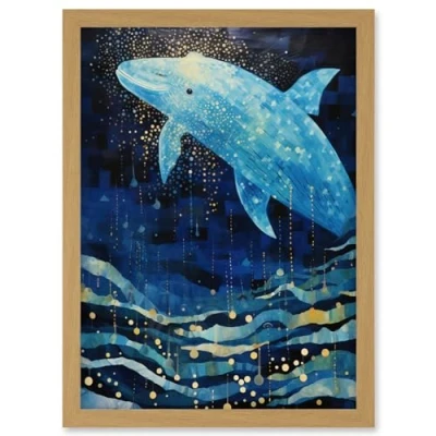 Artery8 Blue Whale Breach in Winter Waters Moonlit Seascape Waves Artwork Framed Wall Art Print A4