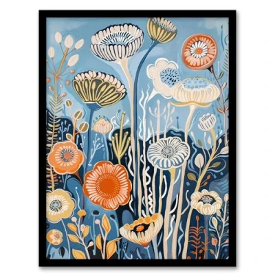 Artery8 Blue Wildflower Sea Garden Painting Modern Floral Living Room Artwork Framed Wall Art Print A4