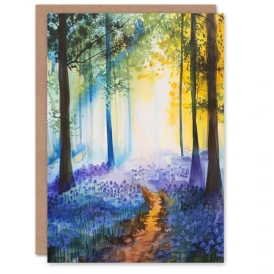 Artery8 Bluebell Woods Misty Forest Morning Watercolour Greeting Birthday Card Him Her All Blank