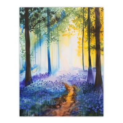 Artery8 Bluebell Woods Misty Forest Morning Watercolour Living Room Extra Large XL Wall Art Poster Print